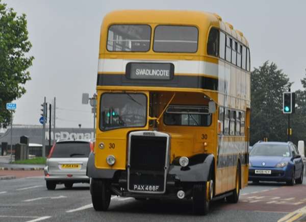 PAX 466F was the last lowbridge double-decker to be built and was bought in 1968 by Bedwas and Machen UDC, a small municipal bus fleet in south Wales. It is a Leyland Titan PD3/4 with bodywork built by Massey of Wigan. Following its sale by B&MUDC's successor, Rhymney Valley District Council, it was operated by Stevensons of Uttoxeter, and subsequently by M K Metro of Milton Keynes. It is preserved in the Stevensons Livery by Cardiff Transport Preservation Group