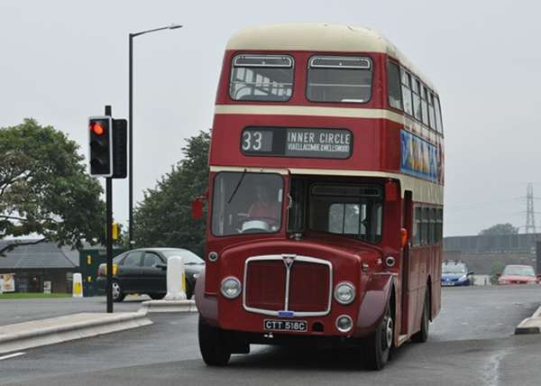Devon General 518 registration CTT 518C is a reminder of their forward entranc AEC Regent V double deck buses – it was new in 1965 and had a Willowbrook H33/26F body.